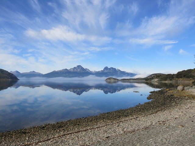 Vue sur la Bahia Encerrada d’Ushuaïa, où les reflets sont littéralement saisissants.